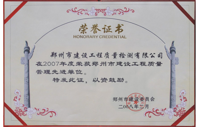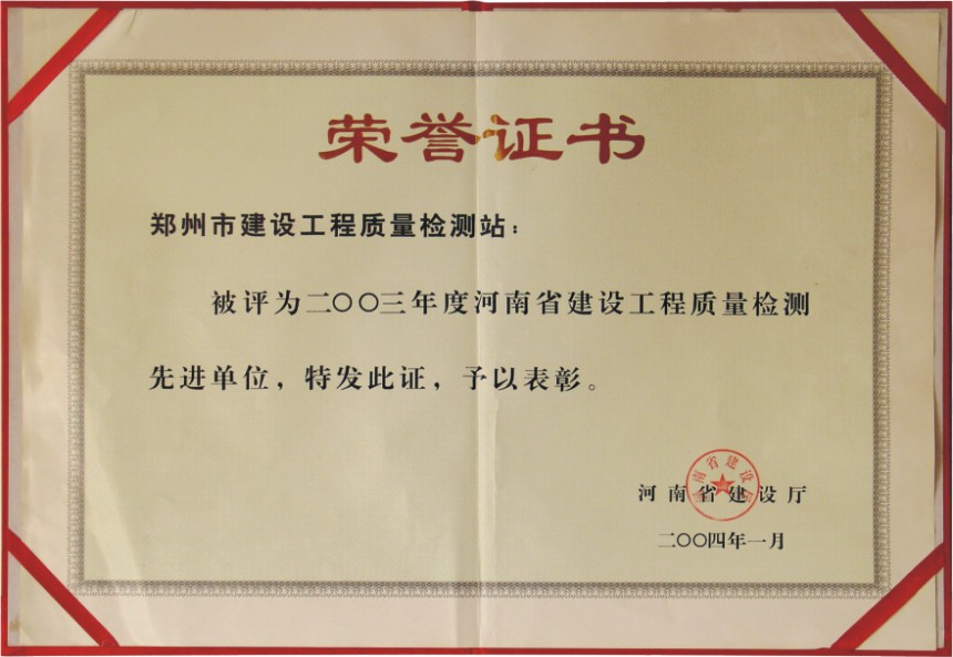 喜訊!我司榮獲2023年度鄭州市城鄉(xiāng)建設局工程檢測先進單位